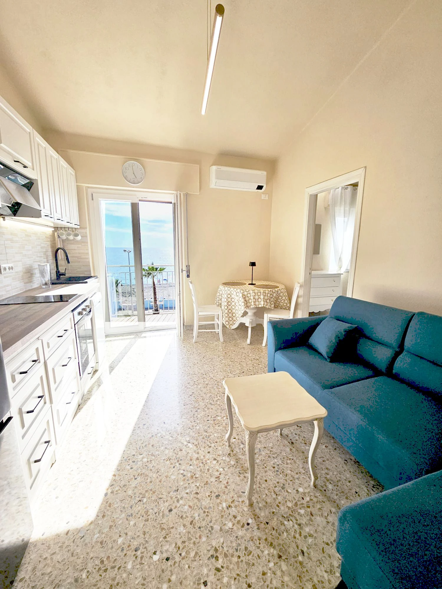 What makes this place truly special is its panoramic sea view—enjoy a deeply relaxing atmosphere right from your window. The beach is literally a one-minute walk away; there is no fuss, just step out of the house and you are at the sea. The convenient location means everything you need for a perfect holiday is nearby, including charming cafes, authentic pizzerias, local shops, a fresh market, and the vibrant Lungomare promenade.